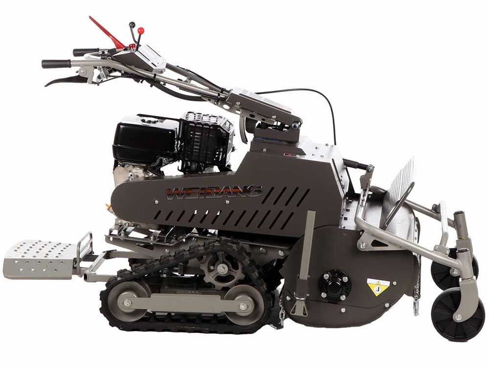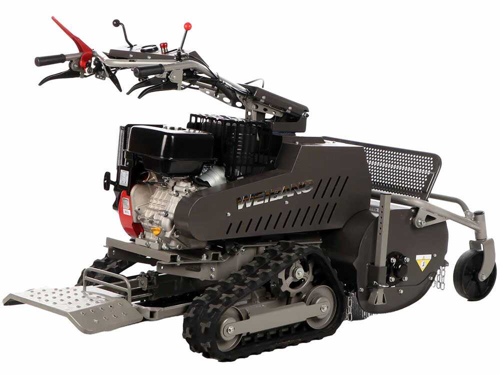 Il trinciaerba cingolato Weibang WBGT6813-TE è particolarmente adatto per terreni accidentati grazie alla sua altezza di taglio regolabile da 10 a 90 mm.